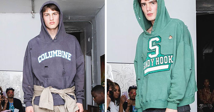 A clothing brand presented school shooting hoodies at a fashion show and caused massive outrage