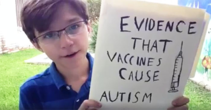 Despite an overwhelming mountain of research to the contrary, anti-vaccine advocates still maintain that vaccines can cause autism. A documentary called Vaxxed released last month also makes this case by linking the condition with the MMR vaccine. Whether or not there’s any truth in these claims, we have no idea. All we know is that vaccines have saved millions of lives around the globe and stopped the spread of such diseases as polio and smallpox. Still, we’re not scientists. But Marco Arturo, a 12-year-old from Mexico is, so we’re going to listen to him.