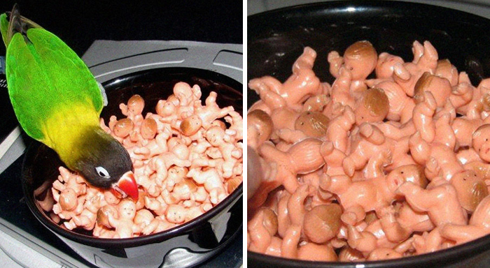 Of course I bought them and put them in a bowl. I didn’t know what to do with them, but they became my bird’s favourite toy (he would toss them out of the bowl with glee).