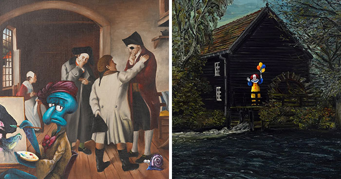 Feast your eyes on a collection of artworks that will make you laugh, scratch your head, and wonder, “What in the world am I looking at?” This collection is not for the faint of heart or the serious art enthusiast, but for those who are ready to have some fun and see classical art meet pop culture in the most unexpected ways. Get ready to be amazed and amused!