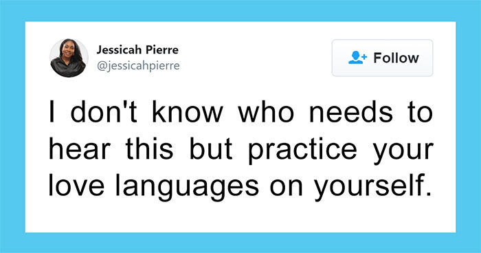 And one woman named Jessicah Pierre is giving us much-needed motivation to transform this redundant narrative of self-loathing into the self-love we truly deserve. She started a Twitter thread with the caption “I don’t know who needs to hear this but practice your love languages on yourself” and it blew up on social media with 110.2K retweets and comments and 330.4K likes.