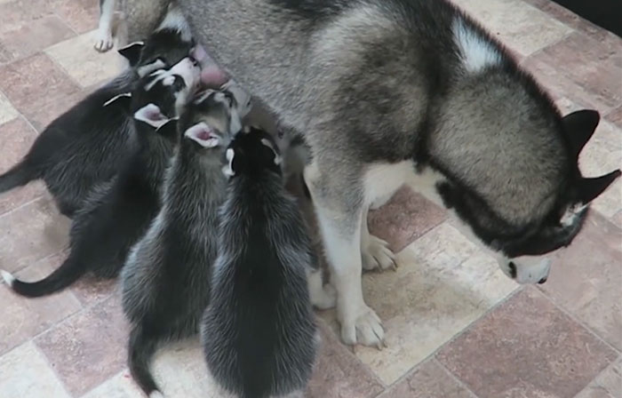 Siberian Huskies Dash & Kitana are raising their puppies and like in any other family, there’s one kid who can’t sit still during dinner. While Kitana was breastfeeding their babies, one of them wouldn’t stop playing with mom’s tail. Looks like somebody needs a timeout!