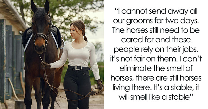 Needless to say, the original poster was nearly furious. Firstly, they couldn’t just cancel the customers, many of whom were longtime loyal clients. Secondly, the bride hadn’t considered the fact that there would simply be nowhere to move the horses, and it’s no wonder the stable smells of horses, ain’t it?