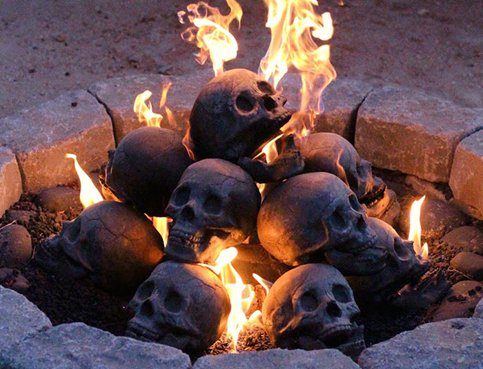 The skulls are made of mixed ceramic materials, and are perfect for firepits – or gas fireplaces. Nothing warms a family home like a pile of flaming heads, especially when your children come home from a chilly autumn day. For a romantic evening, snuggle up to your partner and watch the embers dance through gaping jaws and hollow eye sockets.