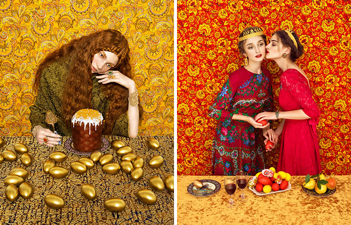 Moscow-based photographer Andrey Yakovlev and art director Lili Aleeva, also known as Yakovlev and Aleeva, are a husband-wife duo that creates amazing photos. For this Easter photo series, the duo combined high-fashion with traditionalism, resulting in vivid images featuring Easter eggs and beautiful women in front of colorful backgrounds.