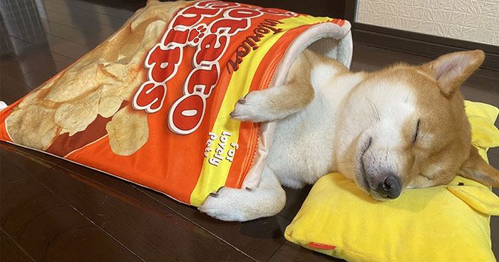 While some dogs can sleep virtually everywhere, whether it’s a pet bed, a cat’s mat, or your own bed, this Shiba Inu girl is very particular about where she naps. The Shiba named Yuki-Chan from Aomori, Japan has been spotted sleeping in the cutest pet beds that resemble snacks.