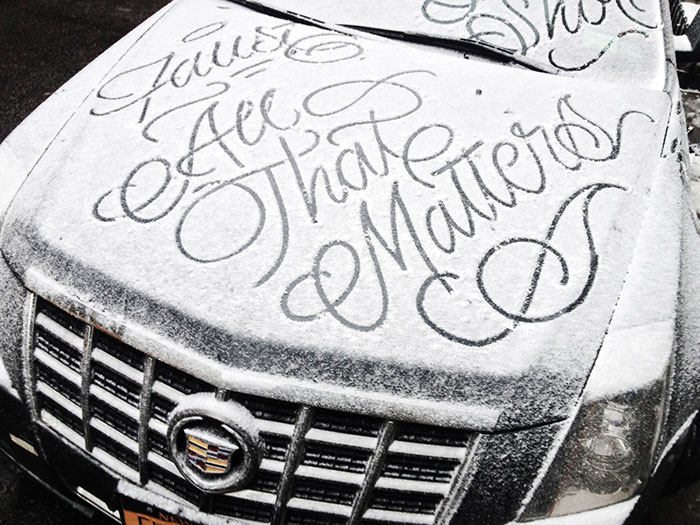 Of course, anyone could draw on a snow-covered car with their fingers, but Faust’s impromptu street art pieces look like they’d be truly welcome surprises because of his flawless hand lettering. Though he was won prestigious art awards, he has nonetheless remained anonymous – despite his close work with big labels like Nike and Faberge, he still does unique artworks on the streets of New York as well.