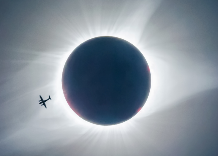 “Eclipse of the Plane” An airplane passed in front of the solar eclipse just before it ended. and the only shot that you can see it because in the other shots it blended in too much into the darkness of the moon. The persons on this airplane must of had one heck of a view…