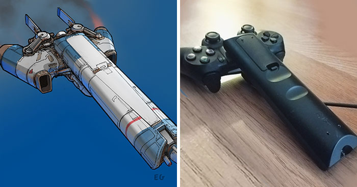 “I have been drawing and making spaceships out of Legos since I saw Star Wars in 1997,” Eric told Bored Panda. “I’m a huge science fiction and fantasy fan, and often I find myself daydreaming, turning the world around me into my own world. I’m always inspired by the great artists of science fiction like Moebius, Ralph Mcquarrie, Chris Foss, Syd Mead and others. I used to love looking at concept art books as a kid (and still do). Some of my favorite video games are Homeworld, Mass Effect, and Halo.”