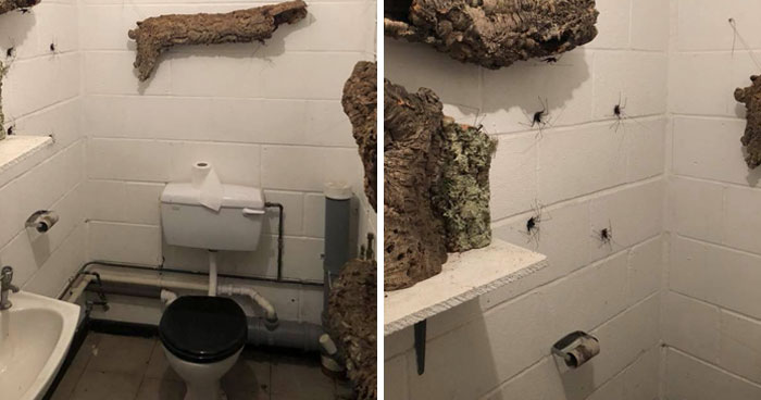 The bathroom captioned with “Such a cool bathroom idea!!!” not only features tree logs for the spiders but the spiders themselves – and people are getting the creepy crawlies just looking at on their screens. Imagine the scene from Harry Potter: Chamber of Secrets where Ron and Harry are surrounded by giant spiders, welp it’s just like that but in the comfort of someone’s home.