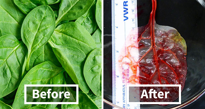 First, the researchers took a spinach leaf and removed its plant cells, leaving a frame made of cellulose