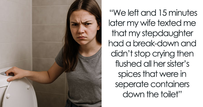 The stepdaughter was so angry at being excluded from the trip that she flushed her stepsister’s cherished spices down the toilet