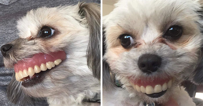 Eunice’s father wears dentures and took them out to take a nap, forgetting that there was a furry prankster in the house. Well, as you can imagine when Maggie came across the new “toy” she took it upon herself to figure out how it worked. Scroll down below to see hilarious photos of what happens when you mix a dog and dentures.