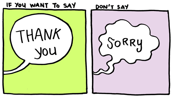 New York-based artist Yao Xiao takes this a step further in her cute drawings, where she suggests that you should say thank you instead. The Internet is full of empty promises and terrible art, but this idea is worth paying attention to; see how being thankful instead of sorry plays out below. For a fun twist, you might also enjoy sharing a thank you meme to spread a bit of gratitude and positivity online.