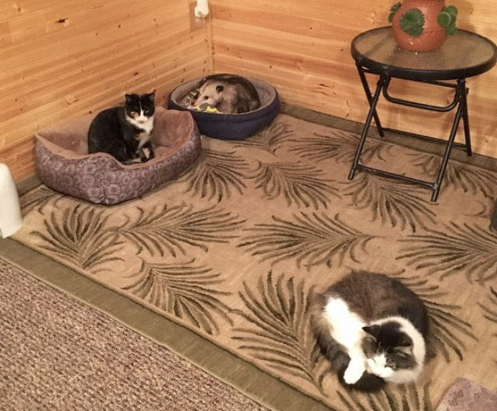 Eric also found out that Tete had been sleeping outside his grandmother’s door since he was just a baby possum, meaning the cute animal could have been orphaned. Regardless of what circumstances led Tete to the warm and cozy cat bed he now occupies, it seems to be a beneficial relationship for all involved. Scroll down to meet the pet possum for yourself!