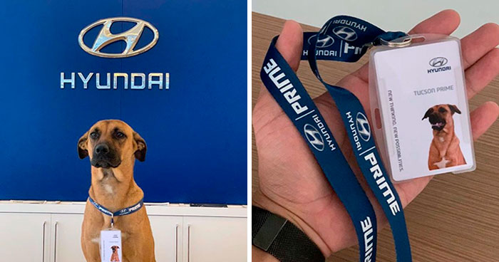 The dealership named the friendly stray Tucson Prime and hired him. They even gave him his own ID card and everything.