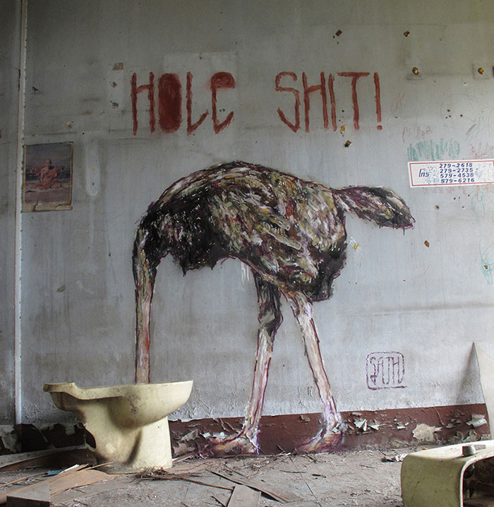 My moniker is Sath. I am a Bangkok-based Spanish-born painter and graphic designer. I have been painting on the streets for over a decade now, always trying to capture reality while twisting it my own way, usually sharing the satirical yet humorous results openly with bystanders; actions of everyday life, through slightly surreal figurative elements.