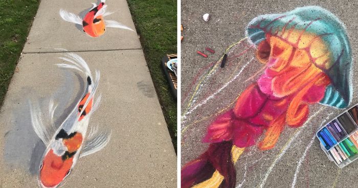 Jan Riggins and her 13-year-old daughter Olivia have always loved chalk art. Before the pandemic, they used to partake in sidewalk art competitions whenever the opportunity arose, but now they’re dazzling their neighbors in one Fort Worth neighborhood in Texas. “When all of the festivals started getting canceled or postponed, I was really disappointed,” Jen, who also paints in watercolor and oils, told Bored Panda. “That’s when I decided to just start using my sidewalk and driveway.”