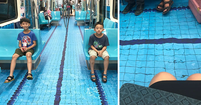 The cool ads on each subway car were focused mainly on the floors, which now resemble swimming pools, soccer fields, race tracks, and basketball courts. It’s a project managed by EasyCard Corporation, which synchronizes public transportation throughout Taiwan, and the Tourism Bureau of Taiwan. You can find these clever ads on the Songshan-Xindian (Green) line trains, a central MRT route.