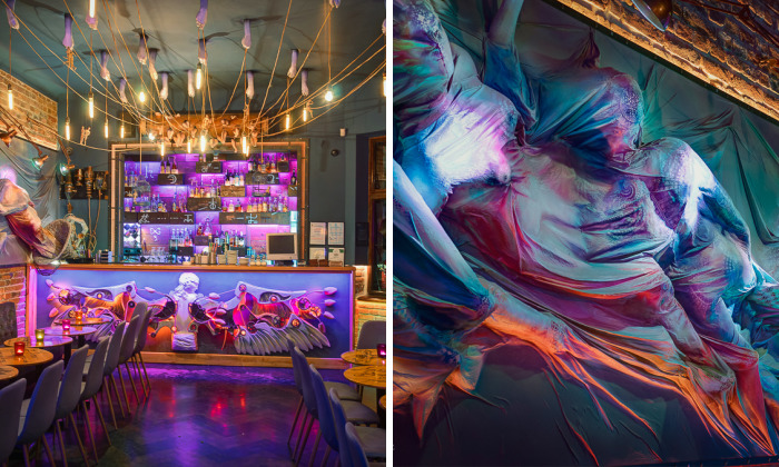 Built in collaboration with 6th Sense Interiors and lots of other first grade artists, having steampunk and dark-fantasy influences, Q Caffe’s new design illustrates the social man’s path, presented from different perspectives, and the complexity of the oneiric, fantastic dimension that pushes past reality’s borders, amplifying and even transforming it. Each visual element has been thought through and worked on to the smallest detail, constructing this fabulous ensemble of metaphors.