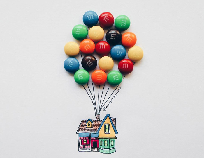 This 20-year-old Malaysian artist completes her illustrations using sweets and snacks, and the result is every child’s dream! From M&M balloons carrying away a colorful house, to Oreo-eyed critters, these drawings bring to mind arts and crafts projects on a rainy school day.