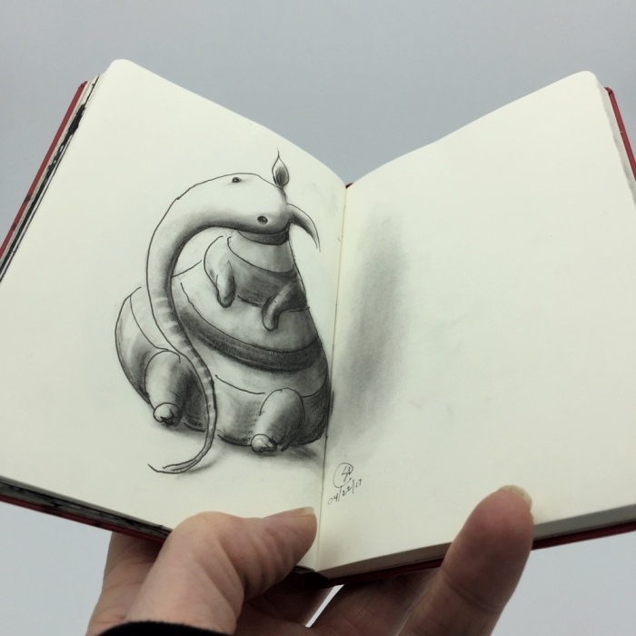 Meet Finley, a character I started working on virtually by accident. This ‘being’ just popped onto the page one day when I started my sketch for the day (I’d commited to a 30 day sketch thing). Up till that day I’d been drawing some pretty anxty things induced by our current political climate and violence around the world. It felt so good drawing Finley that I just kept going…