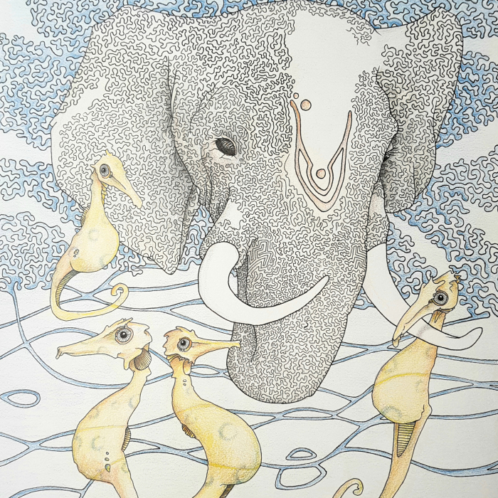 He calls himself Godpipo on the web and this strange name suits them like a well-fitted shoe. His name, his writing, his personality (I think) are as unique as his drawings. Surreal images that might haunt you during the daytime, appear in your nightmares, but never scare you. Or as he describes himself and his art: “It’s, like myself, born out of shards of glass and the remainders of dust. These are the pictures I see when I look at the world through a darkened window.”