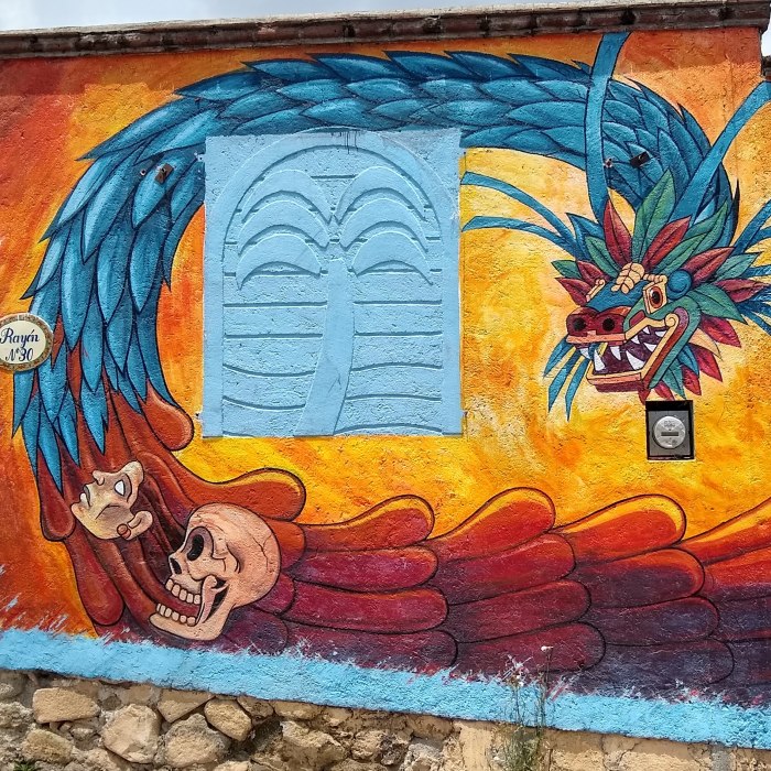 Quetzalcoatl, the mythical feathered serpent that was the most powerful god for the Teotihuacan’s, Mexicans, Toltecs, Olmecs, and Maya, although for the latter it was called Kukulcan. This deity represents the duality between the physical condition of man, by his snake body, and his spiritual part, by his feathers.
