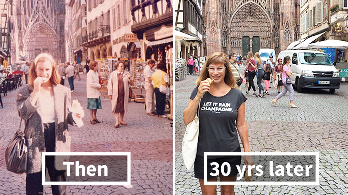 I took 13 scanned old photos of me from 30 years ago and went to see if I could find the same exact locations to take photos of what I look like now. I hope to return again in another thirty years!