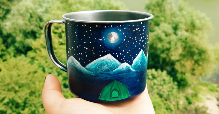 Nancy Woland, who is the artist behind these mugs filled with magic, is also a lover of nature, camping, and travel. Since it’s not very convenient to take your favorite paintings into the wild, she decided to find a way to always carry her dearest art with her at all times.