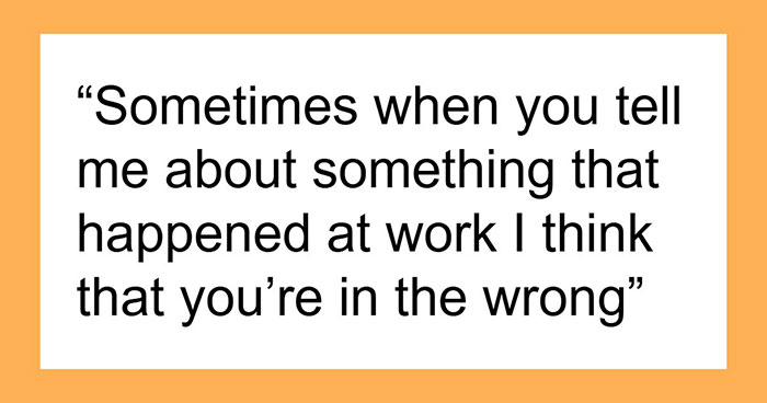 Sometimes when you tell me about something that happened at work I think that you’re in the wrong.