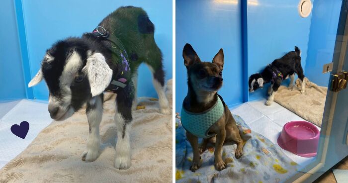 Everyone loves Kozya very much, and he did not come to the clinic alone! He has already made a best friend, the Prague Baby rat. The dog looks after him and constantly warms the Goat, and his size allows them to be in the same box. While the Baby is in the clinic, doctor Roman Gievich performed oral sanitation for him.
