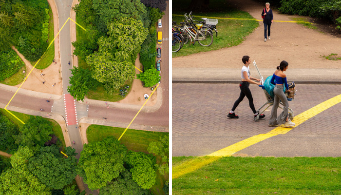You’ll see a yellow square measuring 49.03 meters by 49.03 meters. An area of 2,404 m². This is how much space every Dutch person would have if you divided the Netherlands equally among its population. This work is a physical depiction of what your personal space could be. Well? How does it feel? How big should your personal space be? And what about other countries?