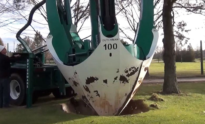 It’s always heartbreaking to cut down a tree. Luckily, a machine called Dutchman Curved Loader Mount Tree Spade (damn what a long name) can replant them instead! Its blades can surround a huge plant and dig it up with as little stress to the roots as possible. Then the spade simply transports it to another location and places it into a new hole. What a way to save those tens of years worth of growth!