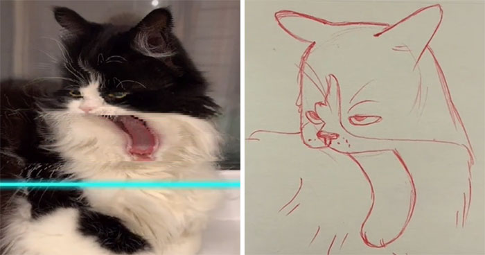But here’s where it gets even cooler. A talented TikTok user called kittishdraws decided to take a few of these squishy animal pics created using the Time Wrap Scan and draw them. Spoiler alert—the results turned out to be absolutely brilliant. With that being said, Bored Panda invites you to look through these adorably hilarious sketches of pets that were brought to life by the Time Warp Scan.