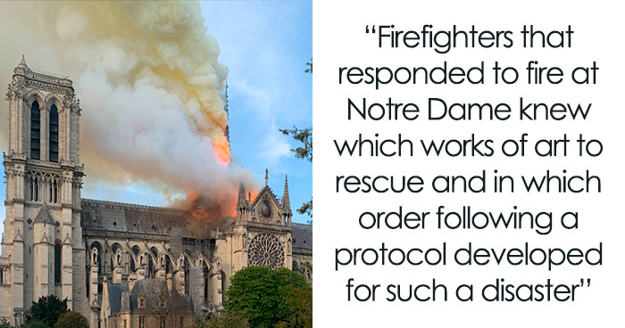 TIL firefighters that responded to last year’s fire at Notre Dame knew which works of art to rescue and in which order following a protocol developed for such a disaster.
