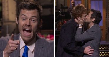 Harry Styles kissed SNL’s Ben Marshall as he clapped back against “queerbaiting” allegations during the opening segment.