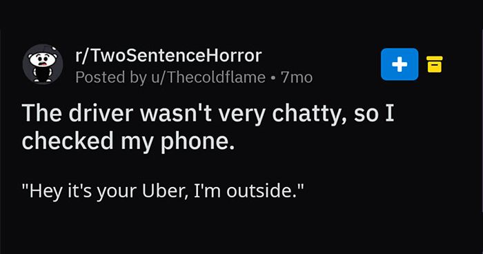 At least, that’s the popular version. Whether true or not, the average person is no Hemingway, so we need a few more words to scribble a captivating horror story. And a subreddit called r/TwoSentenceHorror seems to have found the perfect limit. Two-sentence horror stories.