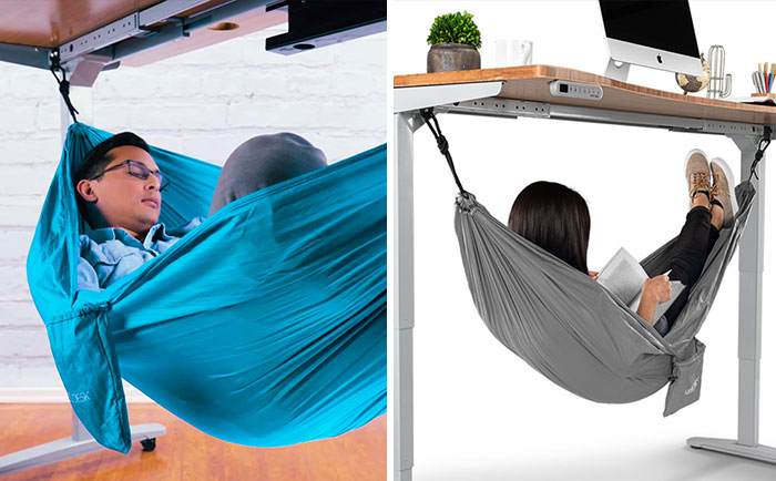 One of these accessories is the Under Desk Hammock. And it’s exactly what it sounds like—a hammock that you hang under your desk and take a nap or read a book in it during a break.