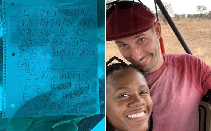 Once Webber put on flippers, goggles and dived into the ocean, he pressed the note to the glass which read: “I can’t hold my breath long enough to tell you everything I love about you. But… Everything I love about you I love more every day. Will you please be my wife. Marry me???”.