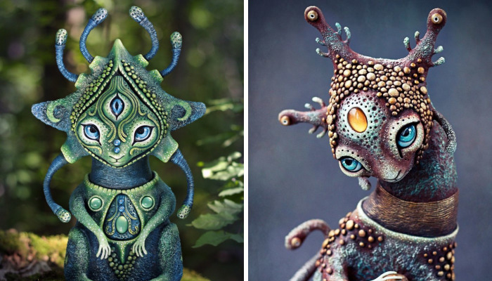 Maryana Kopylova is the mastermind behind these beautiful sculptures. The Ukraine-based artist creates intricate handmade polymer clay mythical creatures, decorated with glass beads and stones.