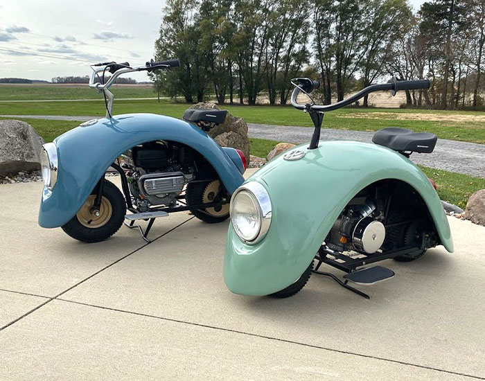 Brent Walter built customized Volkspod motorcycles using Classic VW Beetle’s fenders & they look slick