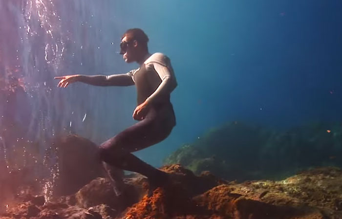 Filmed in El Hierro at Spain’s Canary Islands, this video of a freediver turning the ocean upside down to walk on it and touching vertically undulating watery portals is simply impossible. It gets even more magical when he puts on a cape and soars through the ocean like a superhero. And yet it’s all real.