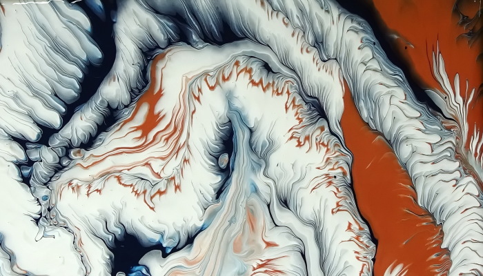 The technique I used is a wandering straight pour and the materials I used are a 6×10 inch canvas, acrylic paints mixed with pouring medium, finger-food tray, torch.