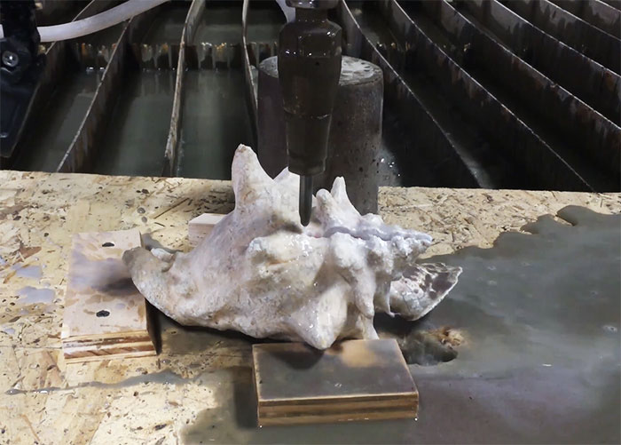 There’s a Lithuanian saying: a drop after a drop can crack even a rock. But one YouTube channel decided to speed up the process and picked up a 60,000 psi (pounds per square inch) to slice things: “We were told that a waterjet can cut through anything so we decided to put that to the test.” Their device can even go through a bowling ball like a knife through butter.