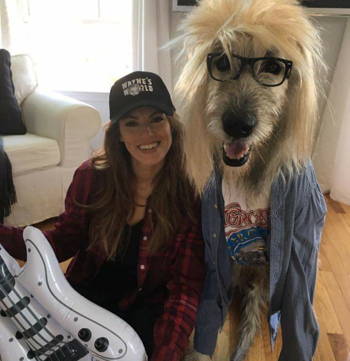 When former Miss Delaware Kate Banaszak started to think about a Halloween costume, she remembered her favorite 90s movie, looked at her adorable dog who was by her side, and… Came up with the look that would make any ‘Wayne’s World’ movie fan proud! Together with her Irish wolfhound, Kellan, she channeled the famous characters of Wayne and Garth in the most epic fashion ever!