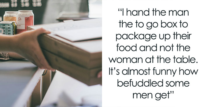 I hand the man the to go box to package up their food and not the woman at the table. It’s almost funny how befuddled some men get.