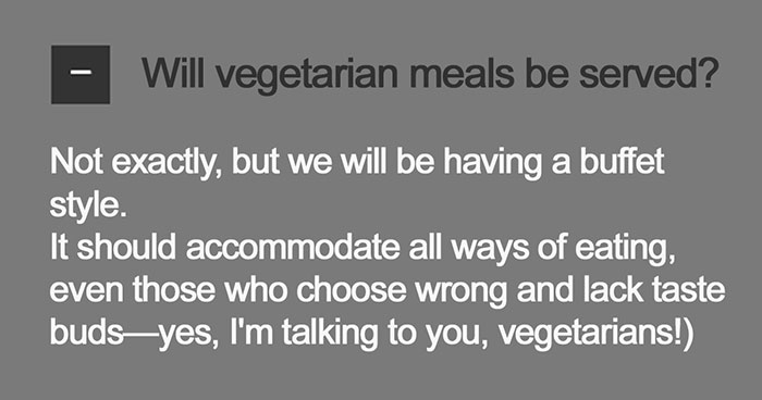 #11 I Went To A Wedding Where The Bride And Groom Hated Vegetarians