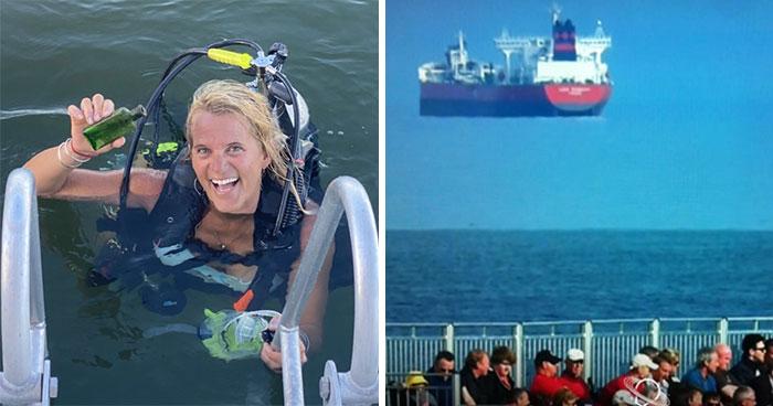 Check out this mind-bending optical illusion where ships seem to float above the ocean or twist into ghostly shapes. It’s called a Fata Morgana—a rare type of mirage caused by layers of air at different temperatures bending light in strange ways. Often spotted over calm seas or in polar regions during a temperature inversion, this natural trick can make distant boats look like they’re hovering, stretched, or even stacked on top of each other.