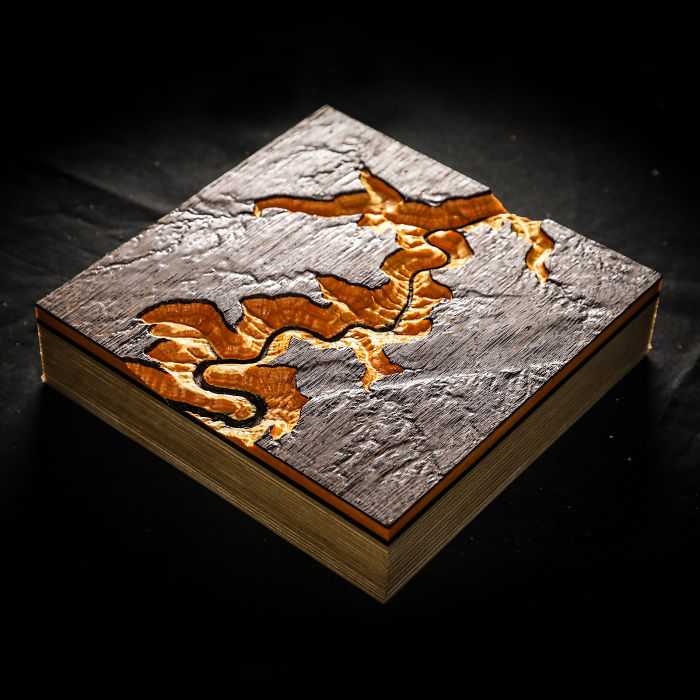 The Grand Canyon machined into Wenge and 29 dyed wood veneers on a birch plywood strata.